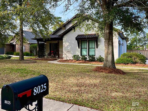 Welcome to 8025 Creekbank Drive, a charming Old Town cottage-style custom home now available in the heart of Daphne! This meticulously crafted 3 bedroom, 2 bath residence was expertly constructed in 2020 by the custom builder, Greenleaf Construction. Nestled in the tranquil and established community of Creekside, this home offers a peaceful retreat while still being conveniently located just a short drive away from shopping centers, the interstate, the YMCA, and the neighboring town of Fairhope. Upon entering, you'll be captivated by the character and quality that define this home. With 10’ ceilings, a gas fireplace, hardwood flooring in the living and main bedroom, along with shiplap accent walls, each detail contributes to the warm and inviting ambiance. The kitchen is a culinary dream, boasting a painted brick backsplash, marble countertops, gas stove, custom solid wood kitchen cabinets with dovetailed wooden drawers, full-extension soft-close drawer guides, and a spacious pantry. The main bathroom is a true oasis, featuring a freestanding garden tub, a large custom-tiled shower, premium shower system w body sprays, dual vanities, and his and hers closets. The attention to detail extends throughout with interior 8’ solid wood doors, heavy craftsman interior trim and baseboards, and Baldwin interior door hardware. There is a spacious 2 car garage with epoxy floors, and a climate controlled attic storage area as well. Setting this home apart is its exceptional construction quality, including Fortified Gold construction, a painted brick exterior, fiber cement eaves and soffits, high-end hurricane doors and windows, and exterior 2x6 construction. Step outside to a screened-in back porch and patio, overlooking a sizable backyard surrounded by a privacy fence, Zoysia grass, professional landscaping, a sprinkler system, and mature trees framing the entryway. Schedule a viewing today to experience the timeless beauty and quality craftsmanship of 8025 Creekbank Drive!