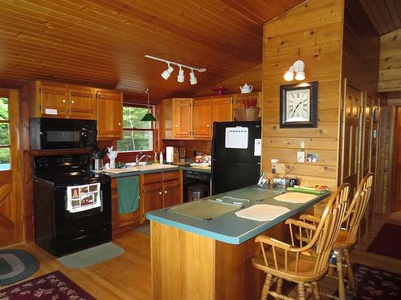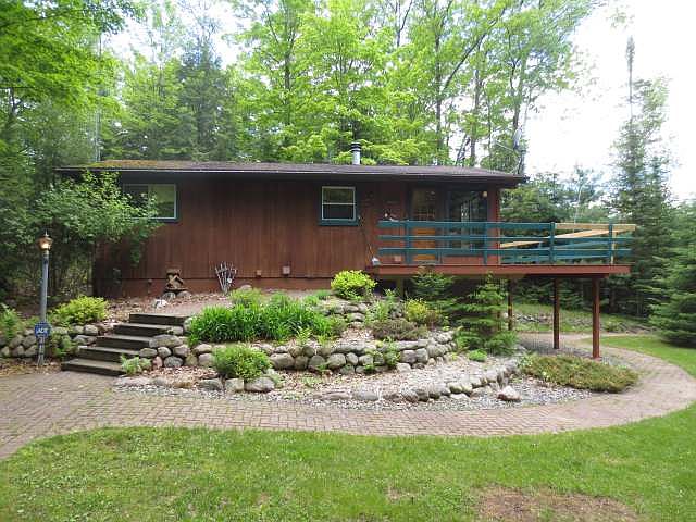 Privacy is only one of the many fine features of this East Horsehead Lake home with 105' of sand frontage and a 1.55 acre lot. The main floor has a kitchen with Western cedar cabinets, snack bar countertop and hardwood flooring. The dining area leads to the living room with a fieldstone and wood burning fireplace and cathedral pine ceilings. The large lower level family room has a wet bar, pellet stove, a full bath complete with a hot tub, and an office area (or an additional bedroom, but there is no ingress/egress window). The exterior of the home has a lakeside deck, tasteful landscaping, brick walkways and a patio/fire pit area. Come escape to the Northwoods!