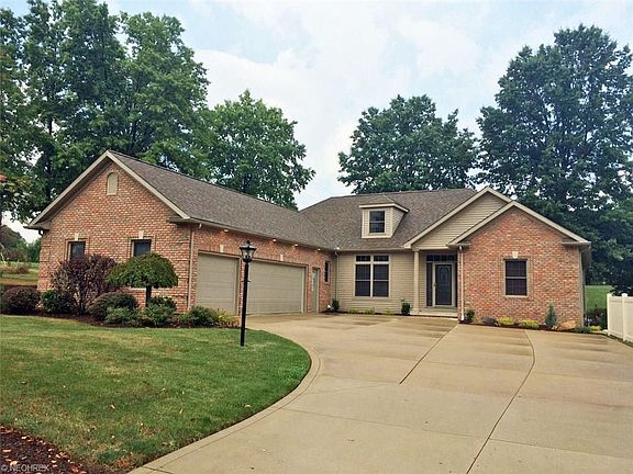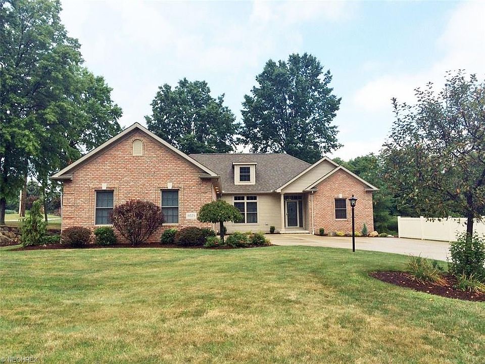 Beautiful split-bedroom ranch home in the highly sought after Wexford development, Jackson Township offers a convenient lifestyle. This home features a partial brick front exterior on nearly a half-acre landscaped lot, all close to schools, shopping, the Akron-Canton Airport and both I-77 & Route 21. Features include: 9-foot ceilings throughout, vaulted great room with gas fireplace; beautiful tile floors in the foyer, kitchen, master bath and laundry; hardwood floor in dinette/sun room; lots of storage & walk-in closets. Split bedroom design offers a private master suite with glamour bath including double vanity, walk-in shower, jetted tub and massive 14 x 8 walk-in closet. Kitchen includes, sitting bar, under cabinet lighting and both a cabinet and closet pantry. Bright & cheery dinette/sun room with door to the private vinyl deck where you can enjoy the back yard. The massive finished lower level offers an additional 1,800 square feet & includes endless recreation and media areas, French doors, daylight glass block windows and ample closet storage. Over-sized side load 3-car garage includes hot & cold water & lots of storage. Additional features include first floor laundry with folding counter, tub and large closet; security system, driveway with turnaround, Andersen windows and a Lennox high-efficient furnace.