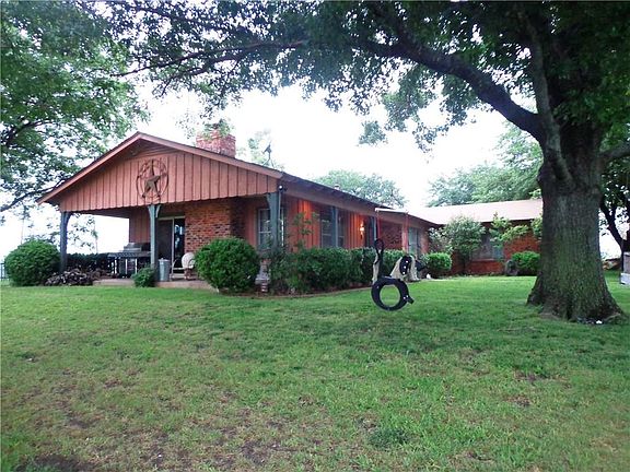 Nestled on 2.14 ac. of beautiful, rolling countryside, this great 3 bdrm, 2 ba. home is set up and ready to go. Built in the 80's, this shade tree lined home has a nice brick exterior & a great covered patio, fantastic trees, with several cross-fenced areas for the horse and dogs. Incl. with the property is a horse pen & stall, a good sized storage bldg. with electricity, sprinkler system in front & back, along with ample parking for your crew. Inside the home you will find a large native stone, wood burning, fireplace that is the centerpiece of the living room along with several built in cabinets & display shelves. An efficiency apartment is supplied & ready for extra income or a place for ur Mother-In-Law