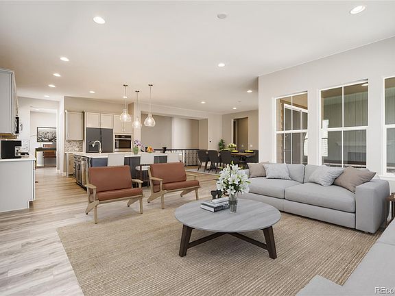 Gorgeous Timber Ridge ranch plan features 2 beds, 2.5 baths, study, great room, kitchen w/large nook, mud room, laundry, unfinished basement and 3 car garage. Gorgeous finishes and upgrades throughout including a beautiful kitchen includes large island, 42" Maple Cabinetry in Shale and Dusk, Frost white engineered counter tops, GE appliances, and walk-in pantry; Evoke Vital Oak Brooke wood-style laminate flooring in main living, tile flooring in bathrooms and laundry; Spacious Master Suite with large walk-in closet, separate vanities, soaking tub, walk-in shower, and engineered stone counter tops and so much more. Enjoy relaxing on the large covered patio with gas BBQ rough in. Property is fully landscaped front and back. HOA Fees are included in property taxes. Close to dining, shopping, entertainment and other amenities. Easy commute to Southlands, Lone Tree, DTC, Denver and beyond. Dont miss your opportunity. Welcome Home!