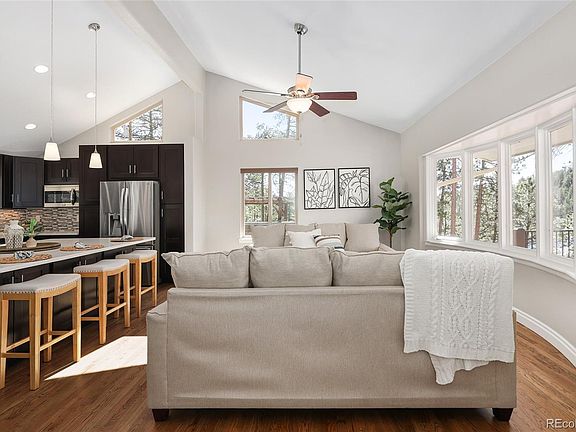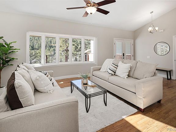 Welcome to this beautifully updated modern and bright 4-bedroom, 3-bathroom home in Morrison. You will be inspired by the gorgeous open layout with vaulted ceilings, sky lights, recently refinished wood flooring, in-floor heat, thoughtfully designed and spacious kitchen with Frigidaire Gallery stainless steel appliances, quartz counters, new pellet fireplace and a fantastic basement entertainment area with a high-end custom wet bar. This welcoming house feels like home from the moment you enter. If the power goes out, rest assured, this home has a Kohler 20kW Natural Gas Generator! The exterior is wrapped in James Hardie concrete siding and surrounded by new landscaping. A fully fenced 2 acre lot allows pets to safely run free, the powered gate adds privacy, and it includes a 2 car attached garage and a large 10x12 storage shed for your toys and equipment. Enjoy the best of outdoor living in Colorado on the sun drenched 25x22 huge front deck or 30x30 side entertaining patio. The circle driveway is freshly paved, positioned for ideal snow melt and runoff, allowing multiple vehicles to park and easier turning radius. So many upgrades and unique features! Just a 15 min drive to town or Red Rocks Amphitheater but located just far enough away to enjoy the peace and quiet of living in the Colorado mountains. Come see for yourself; schedule your tour today and you will fall in love!