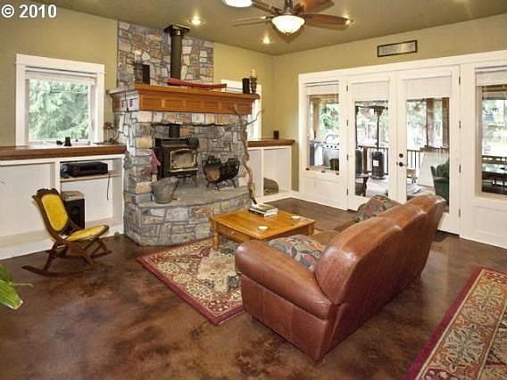 Custom contemporary home surrounded by one level acre of privacy.Only 10 minutes from downtown.Radiant floor heating & solar/gas hot water. Natural light filters through this homes 11 skylights. Custom 1,500sf mahogany decking surrounds this home. HUGE 700sf Master on Main. Separate 640sf Guest house.Heated studio/workshop.Location,Privacy & Sustainability makes this stand out.