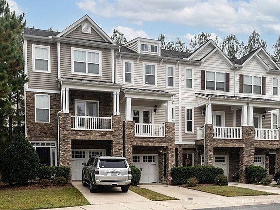 This snazzy and well-located townhome in Townes at Umstead offers three true bedrooms, a one-car garage and plenty of driveway space for a second card. A rear patio and both front and rear decks offer you three ways to enjoy the fresh fall air. The gas fireplace is double-sided and thus is enjoyable from either the living room or breakfast area side. Both bedrooms on the top-floor are good-sized and the one that is just a tad larger does also have a dual vanity.