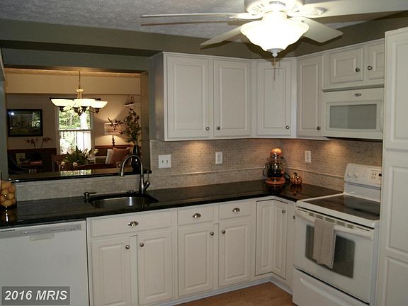 Wonderful covered front porch home on quiet court w/ great open floor plan. Freshly painted, bright sun-lit rms., Kit. w/ prem. granite, LR w/ sliders to large Trex Deck, backs to peaceful woods, repl. windows, newer Mstr. BA & 2nd BA, ceiling fans, fin. LL w/ 3rd full BA, den/office & walkout door to rear garden patio plus fenced in yard. Home effortlessly transitions for indoor/outdoor living.