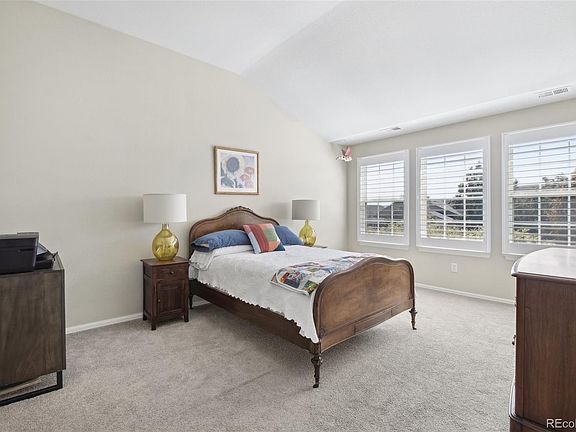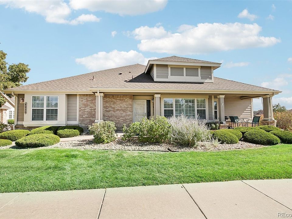 Here's your opportunity to move into the acclaimed Heritage Eagle Bend community! This recently updated home offers an updated kitchen with quartz counter tops, newer stainless steel appliances, updated hardwood flooring, plantation shutters throughout the home and finished attached two car garage. From the updated kitchen there's a handy dining area and living room with gas fireplace with built-in entertainment shelving and surround sound speakers. Right off the dining area is a southwest facing 13' x 8' patio area for enjoying the beautiful outdoors and taking in the breathtaking Colorado sunsets. This home is immaculately maintained and recently professionally cleaned...ready to go! The Heritage Eagle Bend community is a different style of living. From the second you enter the circle drive to the palacial clubhouse and golf course surroundings, you'll get the picture. This community offers just about every amenity imaginable. From this gorgeous home, you're literally within a few step from the award winning, AMAZING clubhouse, offering a restaurant and bar, both indoor and outdoor pools and hot tubs, a beautiful library, patios with fireplaces, billiards room with two high-end tables, huge workout facility, meeting rooms, craft rooms, four bocce ball courts with patio areas, two tennis courts, six pickleball courts, chipping green, putting green, driving range, etc...seriously, it is AMAZING! Take this opportunity to start enjoying the lifestyle you deserve at Heritage Eagle Bend!