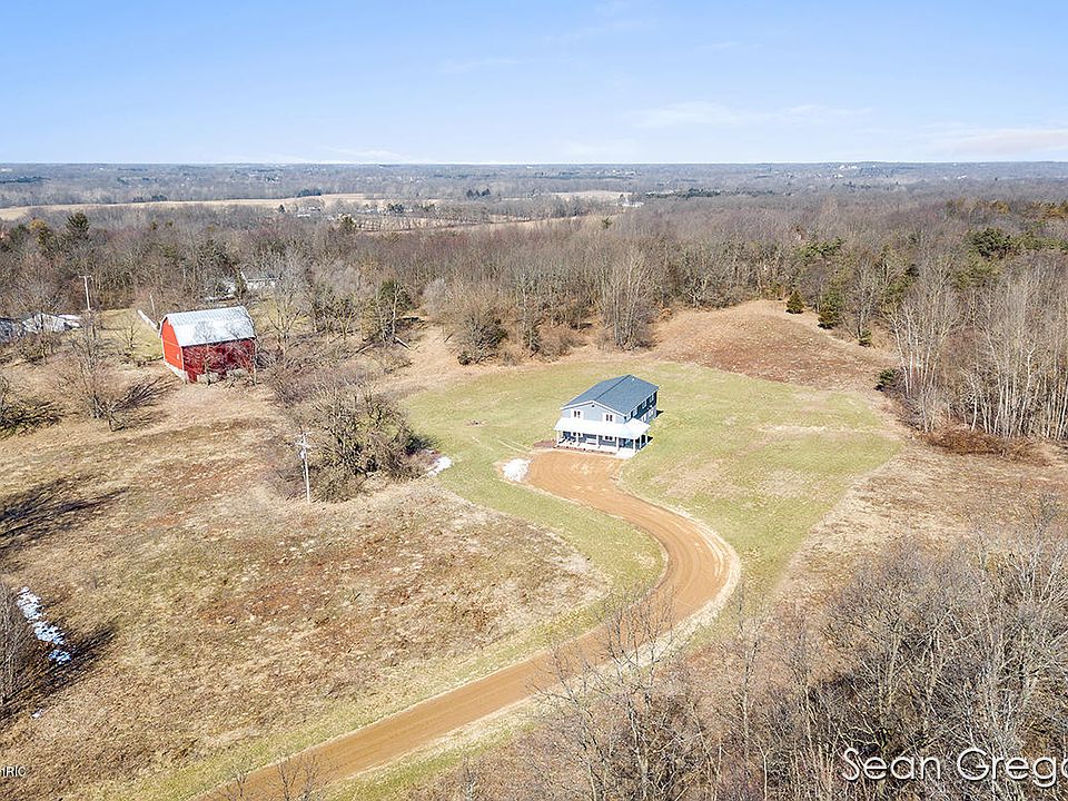 Don't miss this 2 year new Amish built home situated on a 5.45 acre parcel surrounded by woods for the ultimate in privacy! Adjacent to State land to the East with access to the North Kent & Paul Henry Trails. You will love the open one of a kind layout and 2 story great room! Wow kitchen with island snack bar perfect for entertaining. Begin and end your days on the covered front porch with southern exposure overlooking your own slice of heaven! Too many extras to mention - come see it today.