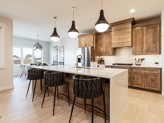 With high-end finishes and impeccable attention to detail throughout, this ranch-style twinhome built by J.E. Homes offers everything you need! Enjoy zero-step entry living in the desirable Hawktree Golf Course subdivision. The spacious entryway includes beautiful lighting and a custom bench with hooks. The open floor plan will lead you into the cozy living room that features a box ceiling with beams and a gas fireplace with stone surround and a custom stained mantle. The elegant kitchen includes quartz countertops and backsplash, a waterfall quartz center island, a custom vent hood, and an oversized walk in pantry. Off the kitchen is the main-floor laundry room with plenty of built-in storage. The gorgeous primary suite offers a chic and modern feel throughout. The primary bathroom offers high-end fixtures and finishes and includes a beautiful tiled shower and large walk in closet. The main floor also offers 2 additional bedrooms and a full guest bathroom. Downstairs you'll find a beautifully designed full wet bar and a huge family room that would be great for entertaining. The walk-out basement also includes 2 additional bedrooms, a full bathroom, and a large flex room. The garage is fully finished with 2 floor drains, a gas heater installed and a sink with H/C water. This home is part of an HOA that includes lawn care and snow removal and it has NO SPECIALS! This property has everything you could ever want - Schedule a showing today!
