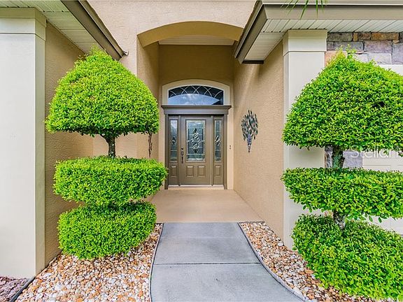 Welcome to your beautiful, split plan 2 bed/2 bath home located in the gated community of Lake James, a 55+ neighborhood. When first arriving, you'll notice the nicely landscaped yard and tall entryway. Upon entering the foyer, the openness of the living area will catch your eye with tray ceilings, crown molding, and ceramic tile throughout. To your left is the guest bedroom and bath, as well as the office/den that features hardwood floors and can easily be used as an extra bedroom. As you walk further into your home, the kitchen is to the right and is open to the dining room and living room, great for entertaining! The kitchen features Corian countertops, extra-large solid wood cabinets, convection oven, pantry closet, and large breakfast bar. The quaint dining nook looks out onto your private wooded backyard. Stepping out through the sliding glass doors off the living room or nook area brings you onto the covered back lanai that offers privacy with no rear neighbors. On the right side of the home through the French doors boasts the master suite. This area has hardwood floors and an en suite bath featuring a walk-in shower, separate jetted Jacuzzi tub, dual sinks, and a huge walk-in closet with lots of shelving. The home also features an in-door laundry room off the kitchen. Lake James offers a clubhouse, heated pool, fitness center, and walking trails. Basic cable and complete lawn maintenance are included in HOA dues. Contact your realtor today to take a tour of this beautiful home!