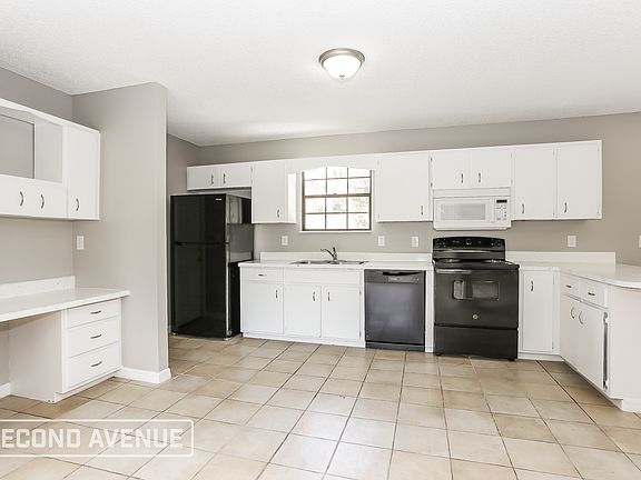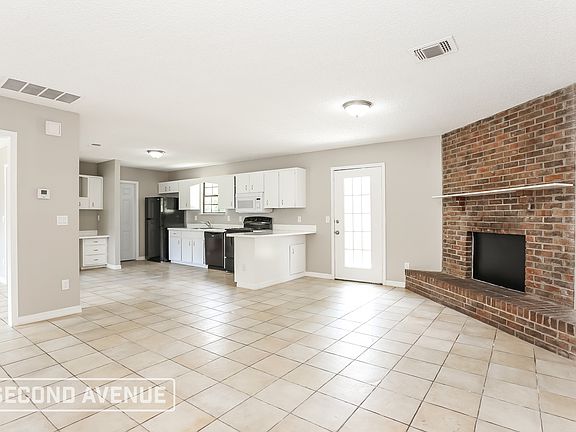 Welcoming 3-bed, 2-bath single-story home for rent in Jacksonville, conveniently located on a cul de sac! Enjoy a bright open layout with tile flooring and a decorative fireplace connecting the living, dining, and kitchen areas. The kitchen features modern white cabinets, sleek back and white appliances, and ample counter space. The spacious main bedroom offers a modern en-suite, while carpeted secondary bedrooms provide comfort and generous closet space. A spacious backyard completes this charming home. Contact us to tour and apply today!