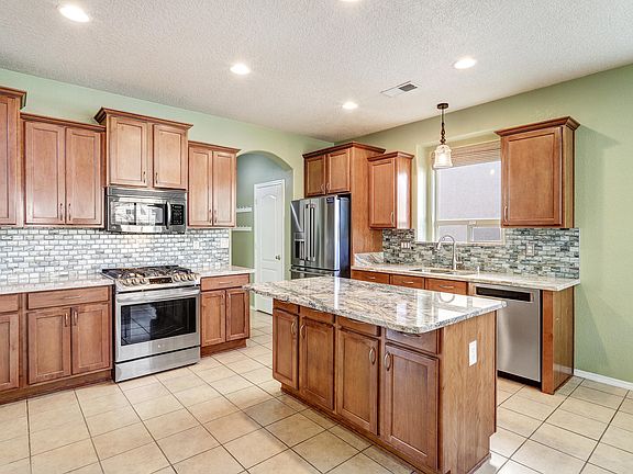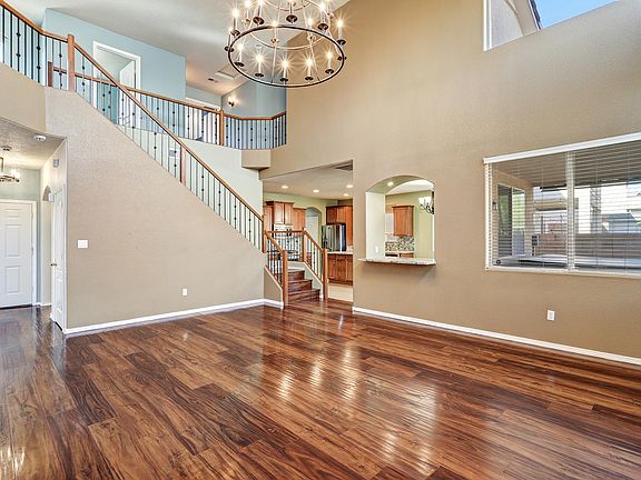 This lovely home is located in the highly sought after neighborhood of Ventana Ranch West known for its beautiful walking paths and parks. Enter the front door into a living area with gleaming laminate wood floors, high ceilings and upgraded lighting throughout. The kitchen is the heart of the home, with a breakfast nook, granite countertops, a beautiful glass subway backsplash and newer stainless steel appliances. There is a half bath downstairs and a flex room perfect for an office or playroom in addition to the formal dining room. The master bedroom upstairs has a large soaking tub and enlarged tiled shower. The master closet is fully custom and must be seen to be believed! There are 3 additional bedrooms upstairs and a full bath with double sinks.