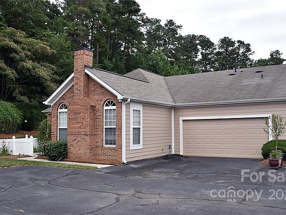 Don't miss the rare opportunity to find a one story condo with a two car garage at a very affordable price. Home is in a quiet neighborhood conveniently located within walking distance to restaurants or shopping. It has easy access to I485 or Independence Blvd. Walk in to a large light and airy great room with vaulted ceilings, and gas fireplace. Spacious kitchen features two pantries, gas stove, raised bar countertop for seating that overlooks dining area and easy access to laundry room. Primary bedroom has walk in closet and bathroom with a large walk-in shower. Secondary bedroom good sized. Relax or garden on your private patio that backs up to woods. Community features a clubhouse with meeting area, fitness room and outdoor pool for your enjoyment.