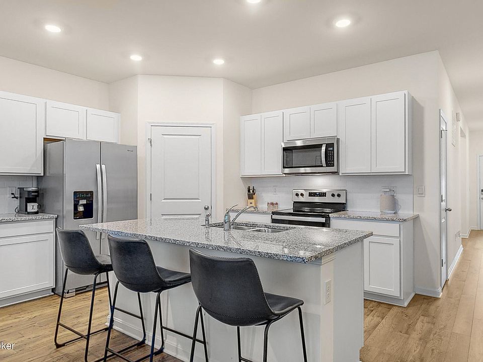 Upon entering, you'll be greeted by gleaming Luxury Vinyl Plank (LVP) flooring that stretches throughout the main living areas, creating a warm and inviting atmosphere. The heart of the home is the chef-inspired kitchen, complete with luxurious granite countertops, a huge center island that provides ample workspace, and a large pantry to keep everything organized. Whether you're preparing a family meal or hosting friends, this kitchen is sure to impress. The full daylight basement offers endless possibilities for expansion and customization. With a roughed-in bathroom already in place, you can easily finish this space to suit your needswhether as an additional bedroom, a home office, or a large entertainment area.