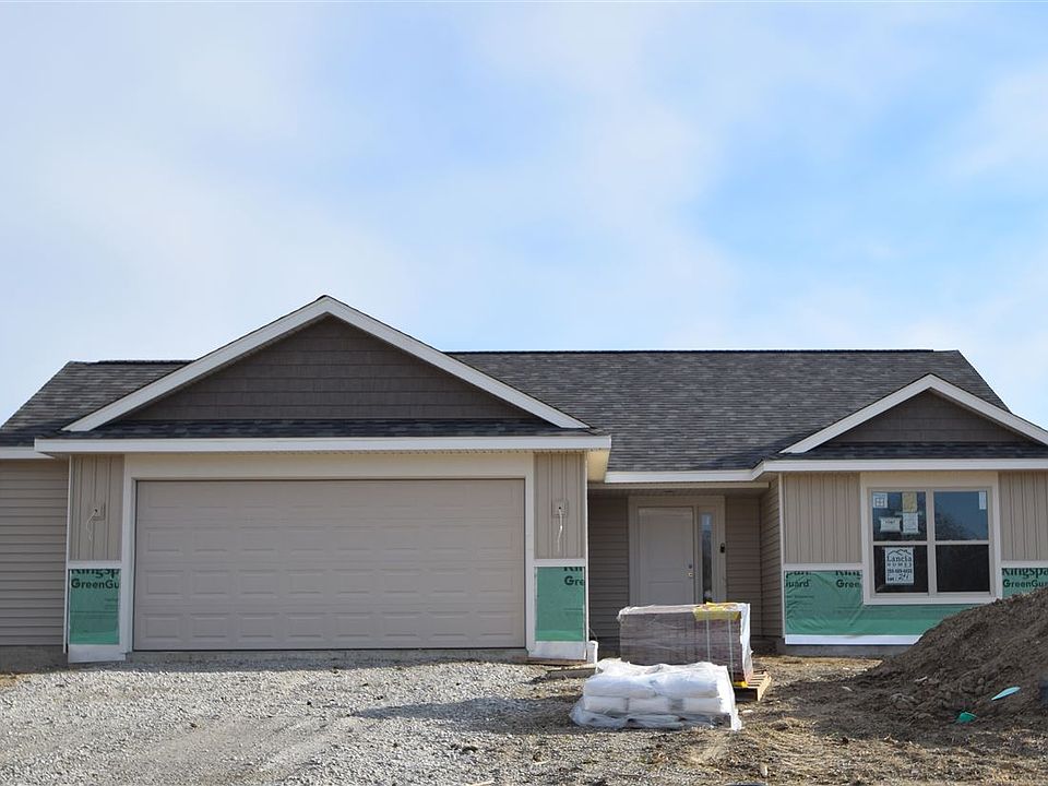 Looking for an easy care home? Lancia's Franklin is our 1415 sq.ft. popular split ranch plan with a covered patio for those warm summer nights. 12" sidelite at front door for safety and more natural light to the Foyer. Great room has ceiling fan. Kitchen faces Great Room and has dual door pantry, upgrade GE Slate stainless steel appliances including smooth top stove and gas line for range. Utility off Kitchen for more storage, great mudroom! Master Bath has dual sink vanity, Master Closet features dual rod & shelf 1-wall unit Master walk-in closet. 2 panel doors throughout. 4' extension on garage for storage plus attic access pull-down stairs with 2 sheets of OSB board. Elevation has board and batten, brick and shakes. (Grading and seeding completed after closing per Lancia's lawn schedule.)