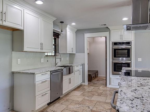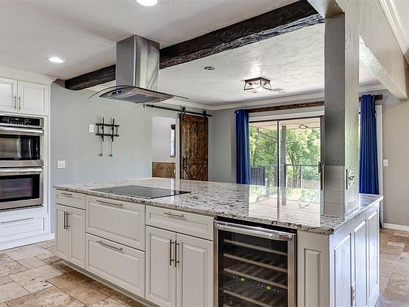 Looking for the Coolest home in OKC? Here it is. Great 2 wrap around covered patios. Covered porch area. Heat/AC with a whole house fan, tile and wood floors replaced 8 years ago. Rock fireplace with ceiling fans in large living. New remodeled Kitchen with granite counter top, tiled backsplash, all stainless steal appliances, with double ovens, wine fridge, farm sink. 1/2 bath updated off kitchen/dining area. Wood and tile floors throughout and crown molding in every room except 4th back bedroom. Oversized 2 car garage, full basement that could be used as game room or 5th bedroom. Granite counter tops in all bathrooms. Master suite has double vanities, 3 walk in closets and separate shower and tub. Heated floors in all bathrooms. Roof with gutters replaced 7-8 years ago. Hot water tank replaced 1 year. Gas hookup available. Huge backyard with fire pit and a great outbuilding. Buyers can install a chain link fence on East side and sellers will fix the fence on south side where damaged by wind. Sit on your covered patio and enjoy the view. Excellent condition, a must to see. Highest and best offers due by Sunday at 6:00 PM and will have answer on Monday. I will acknowledge the offers have come in but will not look at them in case I have my own buyer and that way it will be fair and honest