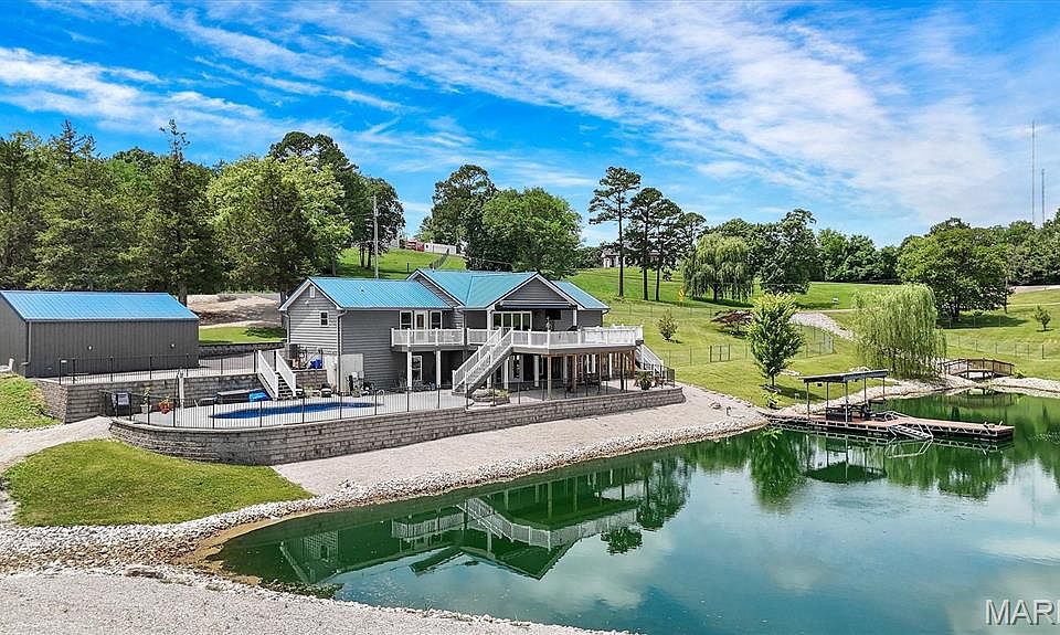 WOW!! WAIT UNTIL YOU SEE THIS PLACE! RESORT LIVING AT HOME WITH NEWER CONSTRUCTION, UPGRADE SMARTSIDE SIDING, METAL ROOF, PRIVATE LAKE W LARGE FLOATING DOCK AND FOUNTAIN, SALT WATER POOL WITH HUGE PATIO AREA, GREENHOUSE (12'5"x20') UNDER THE COVERED DECK W RETRACTABLE AWNING, OPEN GREAT ROOM AREA ADJOINS KITCHEN, HUGE BEAUTIFUL FIREPLACE. CALIFORNIA DECK DOORS UNFOLD TO STUNNING VIEW OF LAKE AND POOL. THERE IS A NEWER OUTBUILDING WITH CONCRETE FLOORS. IN ADDITION THERE IS A MOBILE HOME W GARAGE AND SHED FOR GUESTS OR CARETAKER THIS IS SOLD AS IS. THIS FINE 10 YEAR OLD HOME WILL SELL ITSELF. SALE INCLUDES 8040 & 8028 Tower Rd. THERE IS A CAR LIFT THAT STAYS IN DETACHED 2 CAR GARAGE PLUS LIFT STAND, IN ADDITION THERE IS A 2 CAR ATTACHED GARAGE TO THE HOME. 5 GARAGE SPACE PLUS HUGE OUTBUILDING FOR THE TOYS. THE LOWER LEVEL IN THIS HOME IS VERY INVITING WITH FULL BATH, OFFICE, SLEEPING AREA AND MEDIA ROOM WITH PROJECTOR AND SURROUND SOUND, AND IT WALKS RIGHT OUT TO THE SALT WATER POOL, LAKE W FOUNTAIN AND FLOATING DOCK, AND GREENHOUSE. DOUBLE OVEN, GAS RANGE W 5 BURNERS, STAINLESS APPLIANCES, WASHER & DRYER TO STAY. EVERYTHING LEFT IN HOUSE STAYS. QUARTZ COUNTERTOPS, INSTANT HOT WATER, DECK OFF PRIMARY BEDROOM. Both the main house and mobile home are fully fenced in and ready for pets. Septic repairs scheduled for July 31.
