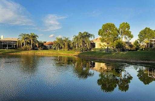 "Under Contract - taking backups". WARWICK GARDENS...one of the prettiest neighborhoods in University Park. You are greeted with a dramatic entry with beveled glass double doors, large porch, pavered circle drive and exceptional landscaping. You will notice architectural detailing, views of pool & spa, decorative wall and lake when you walk in the door. Living room has built-in buffet and dry bar, gas fireplace, transom windows and gracious dining room with French doors to porch. Large and spacious rooms allow for entertaining and enjoyment. Kitchen has gas 5 burner cooktop, granite island and breakfast bar and large pantry. Master bedroom has gas fireplace, built-in dressers and separate "his and her" baths with combined shower. Large den at rear has great view of the lake and golf course and tasteful office built-ins. Note room sizes for 2nd & 3rd bedrooms, 2nd bedroom has desk instead of closet, but can be easily changed out. Private lanai with chiseled stone pavers, covered Veranda with outdoor grill. Fabulous pool and spa! Separate air conditioned studio/utility/storage room in garage, room for golf cart, additional storage cabinets and 2nd oven and microwave! All windows are double pane, insulated & tinted. Audio and TV equipment in family room included. Speakers throughout. Emergency power generator, energy efficient gas tankless water heater, 2 A/C systems. Great value for a beautiful, gracious home.
