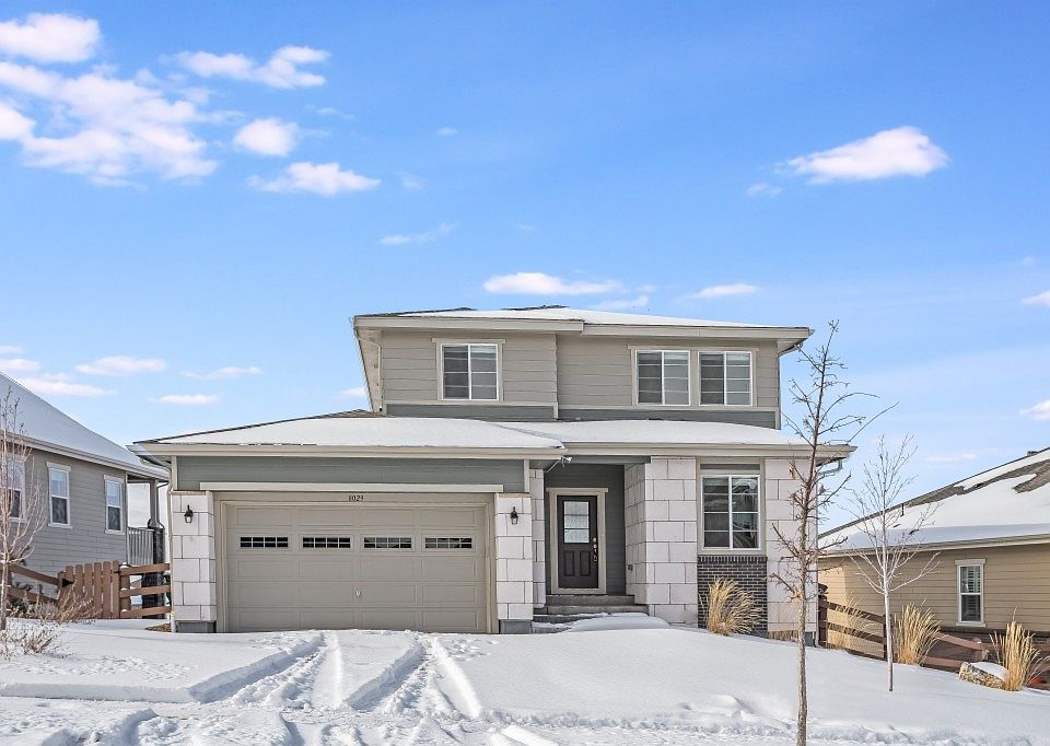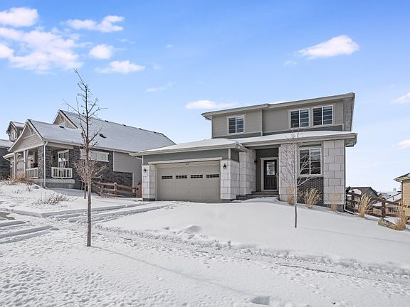 This almost new 2-story in Whispering Pines is located on a ridge line, overlooking some open space with spectacular mountain views over the homes below. This home features an open floor plan with great room. Modern kitchen with stainless appliances, granite counter-tops and white cabinetry. Main floor study off the entry way. Custom mud room with storage locker shelves and a built-in desk area with unique built-in dog kennel. Large west facing deck with mountain views. Custom backyard patio off the walkout basement. The basement has been partially finished with all plumping and electrical complete and walls framed out. Simply add drywall, and carpet and its ready to go! Master bedroom closet was customized with the Elfa system from Container Store. Sprinkler system, ring door bell, and lots of additional upgrades. Home shows like a model.