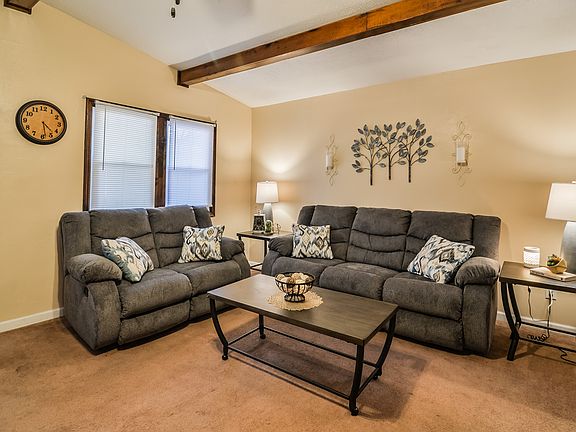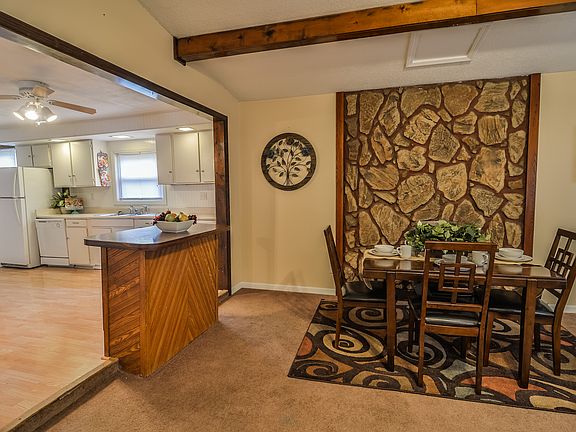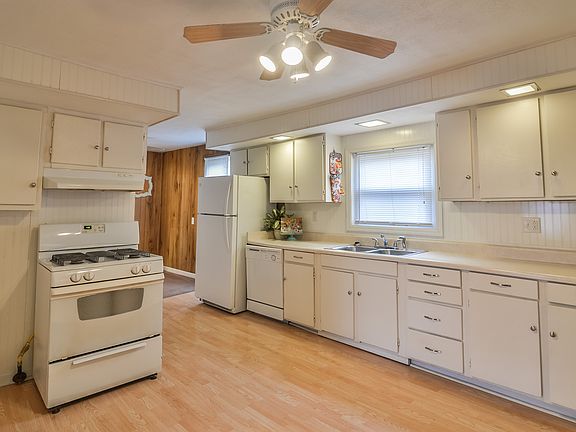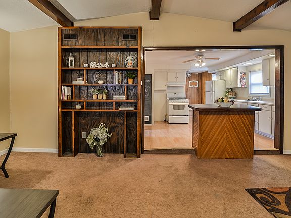 This move in ready 2 bed 1 bath will not disappoint. Vaulted ceilings in the living room. Waterproof vinyl plank flooring throughout the kitchen, hallway, and bathroom. Breakfast bar in kitchen. Custom built cabinetry around washer and dryer. Enjoy time on the covered back patio looking out over the large back yard. Detached garage for extra storage. Sits on double lot. This is an ideal starter home or would make a great investment property. Call today for a private showing.