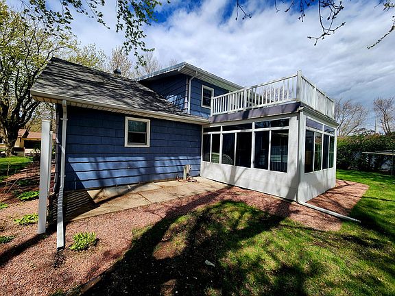 Nestled in a quiet neighborhood on a street ending with a cul-de-sac, you'll find this charming home. This property has only had one owner and has so much to much to offer the next one. For starters, it has all the amenities, including laundry, on the main floor. The common areas are spacious and ideal for hosting family and friends. The main floor has 2 bedrooms and 2 bathrooms, one of which has a newer walk-in shower. The upper level is complete with 2 more bedrooms and another 3/4 bathroom. In addition there is a storage room that leads to an unfinished space above the garage. In the lower level, you will find a family/rec room, flex room and lots of room for storage. You're sure to appreciate the open front porch with recessed lighting, 3 season sunroom with balcony above along with a storage shed. The site is large (almost 1/2 acre) and has mature trees and a perennial flower garden. Lots to see here, so don't delay, schedule your showing today!