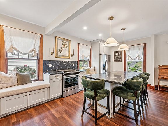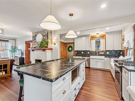 *Walk into this home and be ready to have your breath taken away!! Wow! This home is true to the era in which it was built but made even better with an incredible open floor plan. The living room has a pretty decorative Brick fireplace and opens to the magnificent kitchen, updated in 2021. Stainless appliances, farmers sink, under-counter microwave oven, push-in gas stove, newer counters with matching backsplash, under-window seating, and elegant crown molding. The island has plenty of seating and offers a great entertaining space. The kitchen leads to a covered rear patio. Front windows have been replaced and include a transferrable warranty. Pretty bedrooms on the upper floor with a large master. Newer lighting will dazzle you, also! The main bath was updated in 21 with a new vanity, tiled tub surround, and wainscotting. Privacy fence includes Solar lighting. The backyard has two large flood light fixtures, one in each garage, that can be controlled in the hallway and each garage.