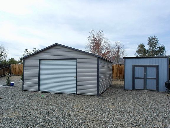 This home is located on a cul-de-sac and has 3 bedrooms, 2 bathrooms, 2 car garage plus an additional 18'x20' detached garage in the back yard. Inside you will enjoy tall ceilings and an open floor plan with plenty of light. Stainless steel appliances in the kitchen., Laminate flooring throughout most of the house. New hot water heater was installed this year. Washer and dryer will stay. There is RV parking on both sides of the front yard with additional gated RV parking in the back. The huge back yard has a covered concrete patio, a hot tub and a large shed with a new roof.