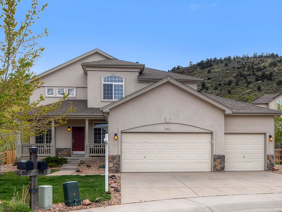 Nestled against the foothills w/incredible mountain views, this fantastic property has abundant wildlife including frequent elk sightings. Set back in the quiet Stonebridge at Eagle Ridge community, the home features an open floor plan w/expansive windows in the great room and a cozy fireplace centerpiece. The multiple outdoor entertaining areas include an extensive deck w/hot tub to host family & friends for summer bbq's & a balcony right off of the master suite with 5 piece bath; it's a perfect private retreat. Enjoy the guest suite in the finished basement, complete w/wet bar, family room, 3/4 bathroom and bedroom with walk-in closet. This home has it all, including new carpet, interior paint, new kitchen appliances in 2015, newer roof & exterior paint completed in 2010. For outdoor enthusiasts, you're minutes from the mountain trails of Apex Park, a community playground & walking trails throughout. Just minutes away from shopping and I-70/C-470 highways to everywhere in Colorado!