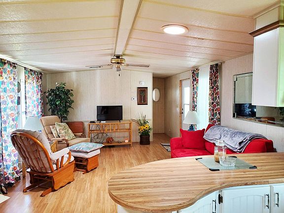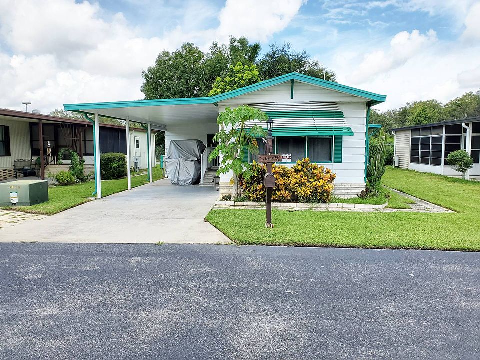 Wanting that sought-after split bedrooms (one on each end of the home) We have it in this 1987 Homes of Merit, 14 x 66. Located in the popular Hidden Golf Club and is part of the combined CRF communities. Hidden Golf and Swiss Golf & Tennis is where you can enjoy an active community on the beautiful 1,000 acre Lake Henry with fishing pier and boat dock. This 2 bedroom, 2 bath home sits on a nice quiet street. It has an open concept. You will have the convenience of inside laundry right off the kitchen and master suite. You will enjoy the, same level, Florida room (17.3 x 9) with new flooring. The split bedrooms give you that extra privacy when family and friends come to visit. With the open concept, large living room (16.11 x 12.8) and Florida room you will find plenty of space. Rather you want to chill with your favorite book or movie or have friends over for game night you won't feel cramped and closed in. There is laminate flooring throughout with tile in the kitchen. This home has a brand-new air conditioner in January of 2019, new flooring in the Florida Room and freshly painted. A nice bonus on the back of the home is a concrete pad with plenty of space to close in for a golf cart shed, storage space or whatever your needs may be. This home comes furnished and ready to move in (minus contents in shed). Call today to see this home and this great community. 2019 Lot lease is $445.41 includes all the amenities of Hidden Golf Club and Swiss Golf and Tennis. Enjoy the beautiful 1,000 acre Lake Henry with opportunities to fish, go boating & enjoy the gorgeous sunsets. It is a very active 55+ land-lease Golf community. There are 2 clubhouses, one that has just completed a million dollar renovation, 2 pools, Hot tubs, an onsite Restaurant and Pub now open 8-8, Gym, card room, billiards room, library, pro shop for the 18-hole executive Golf course, tennis, shuffleboard, pickle ball, bocce ball and the list goes on. There is a strong entertainment committee which provides monthly shows, dances, dinners, tournaments and bingo. Winter Haven, FL, is centrally located between both the Gulf and the East Coast beaches (1 to 1 1/2 hours away). The Orlando Airport is only 45 minutes away and so are many sports events, such as the Lakeland training camp. Disney World, Universal Studios and Legoland are all within 40-minute drive. There is never-ending array of outlet malls for shopping and dining to suit any taste/budget. So, whatever you like to do for entertainment, Central Florida and Swiss Golf and Tennis is the place to live. Property address is 803 Bunker Circle, Winter Haven, FL 33881.