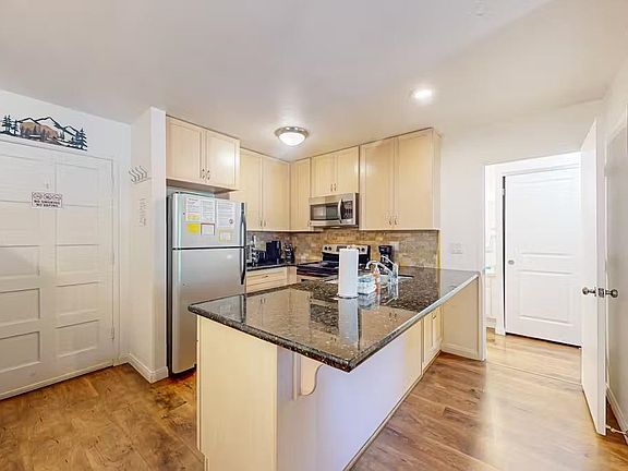 Nicely appointed and updated 1+L.2 /bath, there hasn't been this size for sale in the past 3 years. Kitchen has granite counters, upgraded cabinets, stainless steel appliances. Vaulted ceilings create a more spacious feel, no on above. Living room sofa is a sleeper sofa, loft has its own bathroom. Gas fireplace, easy to warm up the condo. New throw rugs, new kitchen table and chairs, new coffee table, new lighting fixtures, new big screen TV's in living room, loft and primary bedroom. Interior Painted including ceilings. Corner unit, so only 1 common wall, Private storage locker in hallway. 5 minute walk to the lifts, you can come home for lunch! HOA has pool, sauna, 2 Jacuzzi's, firepit, game room, laundry. HOA includes basic cable and internet. Such a popular rental that it is difficult to schedule showings. Back to back on Thursday 4/10 and Monday April 14h so show between 10 and 4 Currently open 4/16 after 10 and before 4 on 4/18. Open 4/20 until 4/24. 4/24-4/27 rented