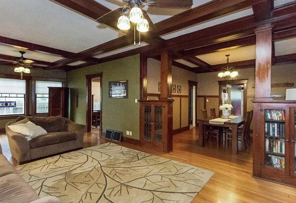 Step back in time as you approach the large covered front porch of this 1912 built 1.5 story, shaded by mature trees, outlined by perennials in the fenced yard. Stunning woodwork from top to bottom complements hardwood floors. Living room holds fireplace w/built ins separating the space from formal dining room. 2 bedrooms are near the full bath & 1st floor laundry. NEWER cabinets are accented w/a few glass doors, generous amount of cabinet space & enough room for breakfast nook. All appliances included! Extend your entertaining outdoors to the quaint patio. Best is yet to comeretreat upstairs to master suite floor, complete w/bathroom. Lots of storage in the basement & 2 car garage w/alley access. NEW furnace & air conditioner installed just this year! This location is near bus line, short commute to downtown & suburbs. Take advantage of the $10,000 grant money for approved buyers for additional updates. What an opportunity to make this your next Home Sweet Home!