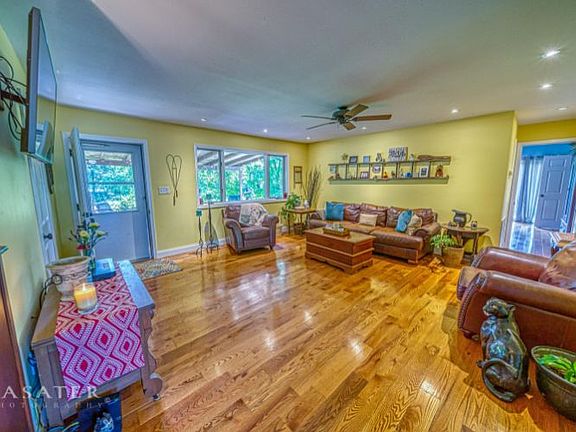 This is your Pleasant Valley Farm in the Ozark Mtns. Less than 5 minutes to Walmart and only 2 10 gravel road. These 40 acres and a home are country living at it's best! Home has updated hardwoods, tile, and new trim. Covered front porch to enjoy a peaceful rainy morning and a deck off the large master suite. The unfinished basement can be a garage for your vehicle and workshop for the handi-person of the family. There are 2 ponds, spring, wet weather stream, a barn, chicken coop, 220 outlet for your camper. See documents tab for additional features.