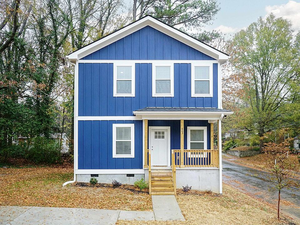 Beautiful new construction in Durham. Covered front porch. LVP throughout with tile in bathrooms. No carpet! Open kitchen with large island, granite countertops and tile backsplash. Fridge included! No HOA. Minutes to NCCU, major highways, shopping and dining. Ask about 5k grant.