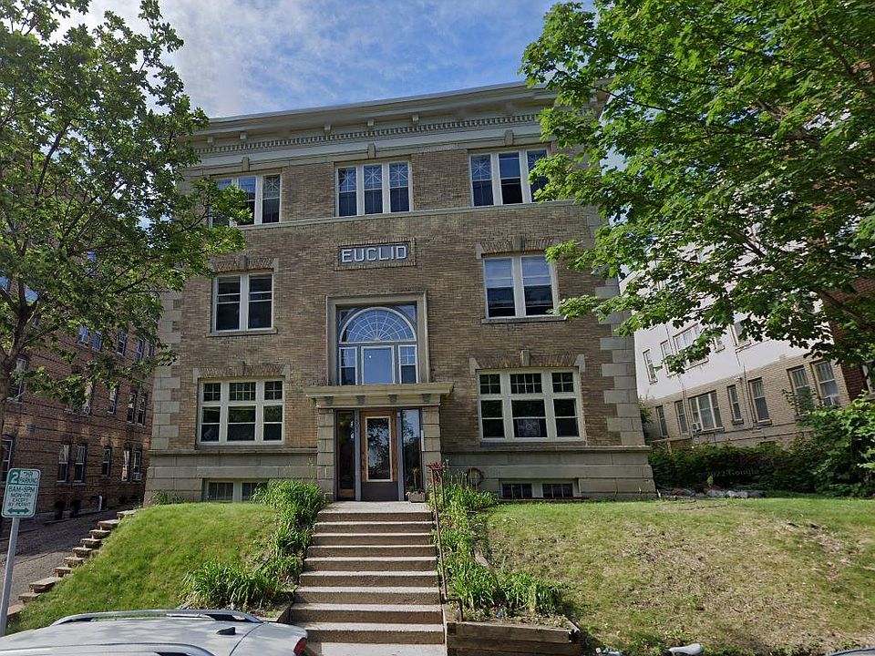 Located in the attractive and convenient Minneapolis neighborhood of Lowry Hill, you'll be just across the intersection from such attractions as the Walker Arts Center and Thomas Lowry Park's famous Seven Pools. Options for eating, shopping and recreation abound within a convenient drive and an enjoyable, bracing walk. Cross Hennepin and Lyndale and make your way to Loring Park, the gateway to downtown from South Minneapolis, or catch the 6, 4 or 2 buslines from the closely located Hennepin, Lyndale or Franklin avenues! In short, when you make your home with us, Minneapolis (and the Twin Cities) is yours for the asking, and you'll have a charming place to call home. With handsome and spacious 1911 apartments featuring original leaded glass dining room hutches, beamed ceilings, commodious bathrooms with the original pedestal tubs and sumptuous tile floor, you'll have as much fun at home as you will out-and-about! Plus with utilities included in the rent (heat, water, trash), you'll find it extremely affordable as well! I'm sorry, but NO DOGS allowed. Apartment #12 is located on the 3rd (top) floor, facing South and West. Minimum 12 month Lease required. Owner pays heat, water, trash and recycling. Tenant pays electricity, cooking gas, and cable/internet. Fiber Optic US Internet is available. Pet fee is $100, cats only allowed. Coin operated laundry in the basement.