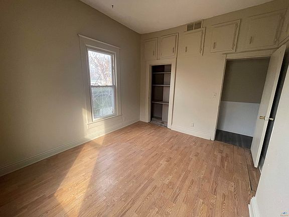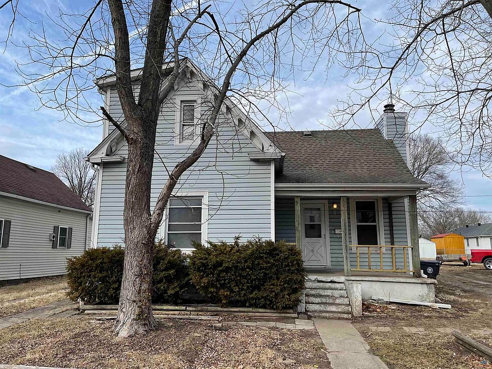 Great square footage! This 4 bedroom, 1.5 bath home has lots of space & storage throughout. Unique living rooms offers high ceiling, fireplace, & curved staircase. 2 spacious main floor bedrooms with lots of storage. Bright kitchen with room for eat-in area. 2 additional bedrooms upstairs along with half bath. Covered front porch, spacious backyard, & off-street parking. The driveway to the west of the house belongs to this property (driveway to the east belongs to neighboring property). Located close to Parkview Elementary, Centennial Park & Pool. Come take a look! *Seller would consider flooring allowance for front room.