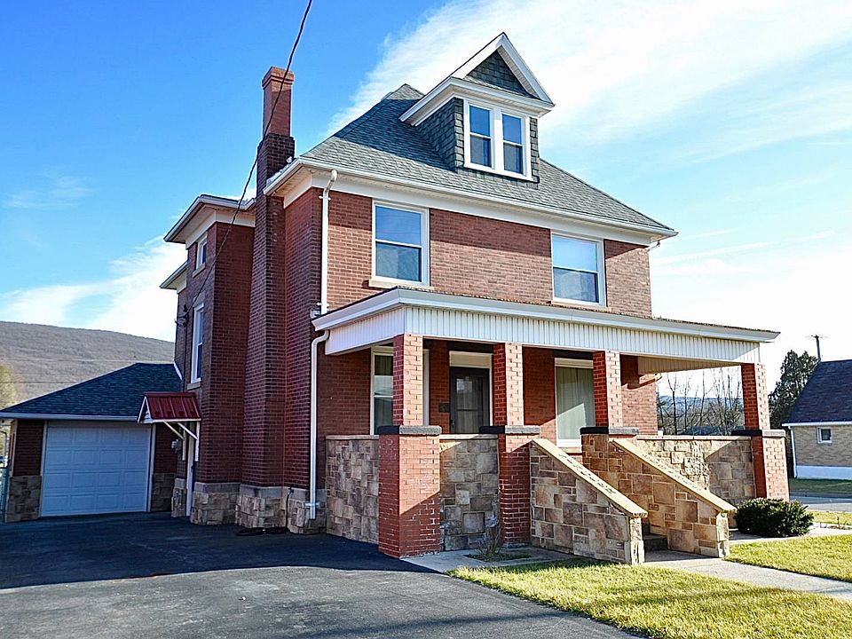 WOW! This beautiful brick 2 1/2 story beauty on a fenced corner lot in Bellwood Borough really delivers! The outside of the home has been beautifully maintained and is impervious to the elements, with new roofs and replacement windows; inside has so much potential and is waiting for you! Hardwood floors, brick wood burning fireplace, eat in kitchen and formal dining room; upstairs you'll find 4 bedrooms and a full bathroom. The walk up attic could be finished or would make the perfect workshop or office. In addition to the 1 car attached garage there is a huge and heated two car detached garage with full second floor workshop and separate 100 amp electric service. Beautiful fenced rear and side yards, lots of paved off street parking, economical natural gas heating and hot water ... see this wonderful property soon and make it yours!