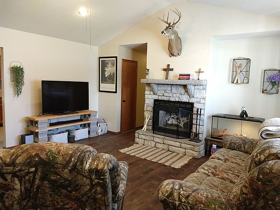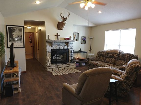 - Features: Ceiling Fan, Porch-Covered, Deck, Disposal, Fenced Yard, Fireplace-Wood, Satellite Dish, Sump Pump