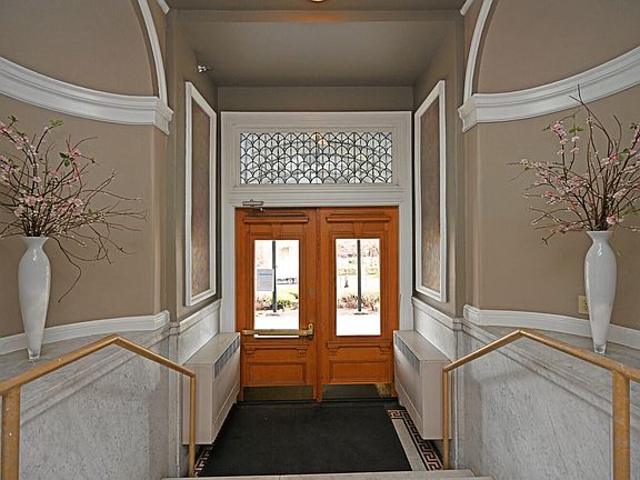 A delightful end unit condo showcasing original details of the coveted Hannaford. This unit is a first floor unit and has a 1 car detached garage. Enjoy the exceptional beauty of the terazzo floors in the grand lobby, hand crafted metal work and sweeping windows overlooking the grounds that lead to the parking area and pool. This efficient unit has 2 full bathrooms, a designer kitchen, in unit laundry and 2 bedrooms. A very unique unit that is move in ready and offers immediate occupancy.