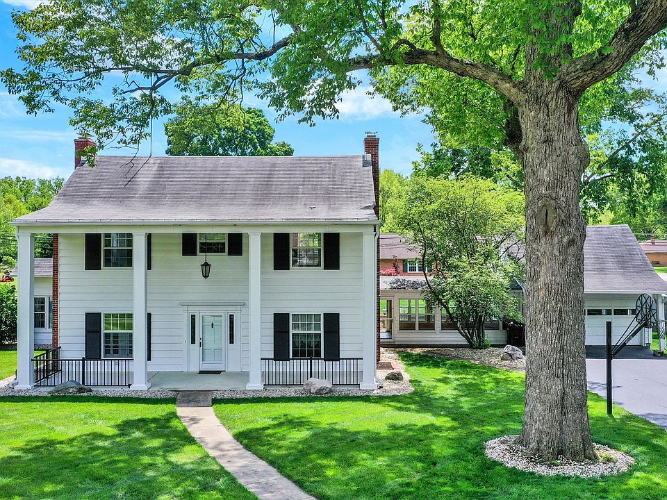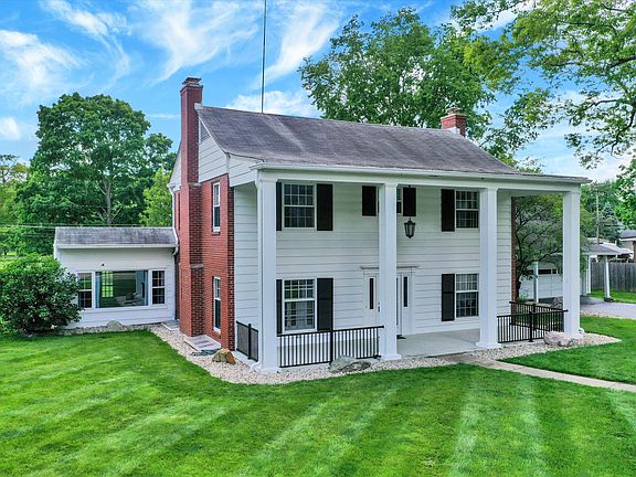 Proudly located on the most picturesque and prominent street in the charming town of Edinburgh, this distinguished home claims over 3500 square feet of finished space and a 3/4 acre double lot. Watch the activity of Main Cross St. from the comforts of a full height covered porch that also spans the full width of the house and overlooks an impeccable lawn. A stunning foyer greets you inside, with parquet floors, leaded glass windows, a grand staircase, and formal dining and living rooms on either side. The large, bright kitchen features abundant cabinets that are built to last, ample counter space, modern appliances, and built-in shelves between pantry and half bath. An adorable and functional breakfast room/butler's pantry is nestled in between formal dining room and kitchen. The main floor bedroom features a delightful & private full bath, perfect for guests! Walls of windows fill the cozy den with tons of natural light. You'll fall in love with 3 upper-level bedrooms and 2 full baths, each bathed in light and bursting with character. A huge rec room w/ glass block windows, abundant storage, laundry, and mechanicals occupy the basement. And there's more! The glass enclosed porch functions as sunroom and breezeway to garage w/ loft. Custom stone patio is perfect for entertaining, dining al fresco, and enjoying the park like setting of this incredible property. This one-of-a-kind estate is ready and waiting for its new owners and next chapter!