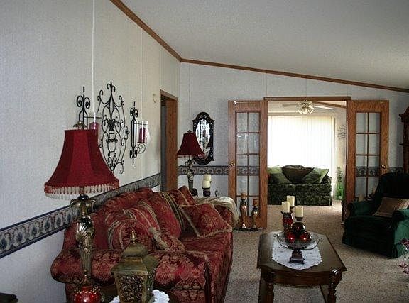 Great square footage and move in ready condition at an affordable price. Would be perfect for someone looking to downsize. This manufactured home features a roomy eat in kitchen with ample cabinets and large living room. Master bedroom and bathroom with large garden tub and separate shower area. 2nd bedroom and additional full bathroom. Possible 3rd bedroom with closet is located off the living room and has access to a nice deck area. This area is currently being used as a sitting room and makes a great addition to the living area. This home sits on a nice corner double lot with a detached garage, carport, and storage shed. Newer roof, water heater and skirting.