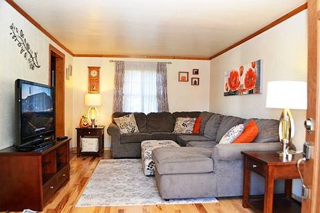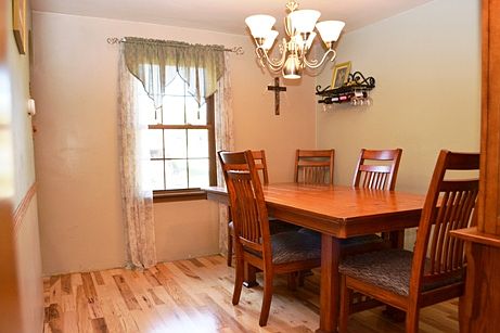 Inviting All Brick Colonial with covered front porch and park-like setting on a large corner double lot. This home boasts a beautiful updated galley kitchen with granite counters, lots of cabinets, stn stl appliances and gorgeous 3/4" hardwood floors recently installed throughout the dining room, living room & kitchen. A warm and cozy family room awaits with a log burning fireplace and ample natural lighting. Some of the features are updated baths, updated windows, solid core 6 paneled doors, new front entry door, level driveway, neutral decor and full basement that could convert. Close to Butler's Golf Course, Round Hill Park, Walking Trail, School, Shopping & restaurants. This is a warranted home for 1 year.