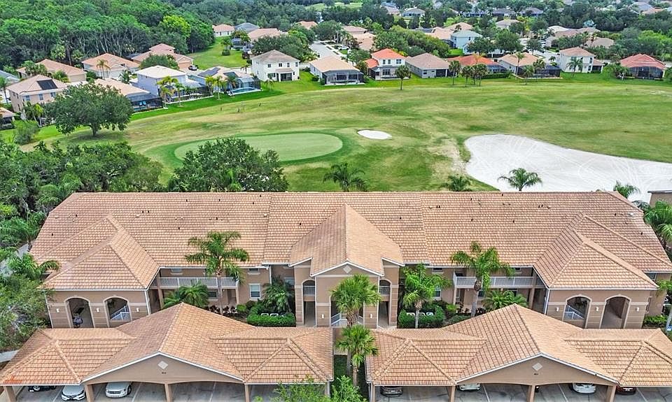 One or more photo(s) has been virtually staged. Best price East of I-75, don't miss out! Maintenance-free condo with golf course views. Inside the unit, you'll find tasteful updates including NEW carpet, paint, appliances, and A/C. The layout includes two bedrooms, two bathrooms, a spacious living room, dining area, and a charming kitchen. Step out to the screened-in porch to enjoy the green side views of the freshly renovated Heritage Harbour golf course. Live the country club life, without the country club price. Golf membership is not required but readily available. This gated community is located in Stoneybrook, a hidden gem in Heritage Harbour, offering residents pools, a fitness center, spa, and sporting courts. Additionally, Central Park is nearby, featuring sports fields, nature trails, a fishing pier, and more. This value-packed property is just a mile from the new Costco complex with added restaurants and retail shops. Along with easy access to I-75, commuting to Tampa, St. Pete, and Sarasota is a breeze. Other nearby amenities include the Sarasota Memorial Urgent Care hospital just a mile away and Anna Maria Island just 20 miles away. The assigned parking spot is conveniently located steps from the front door. Don't miss your chance to schedule a tour of this incredible property today!