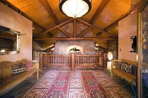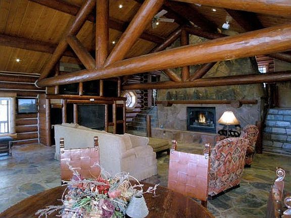 Majestic setting with Peak Views! Custom Log Home with unparalleled PEAK VIEWS! Beautiful slate flooring throughout the entry and kitchen as well as in one of the 3 family rooms. The kitchen features granite counters, center island, Viking/Sub-Zero appliances, 2 Fisher Paykel dishwashers, double ovens and a six burner gas cook top. The main family room boasts a massive floor-to-ceiling stone fireplace, wall of windows that take advantage of the peak and golf course views, built-in entertainment center housing 4 televisions and access to one of the 3 covered decks. Adjacent to the kitchen is another family room with built in entertainment center. Downstairs you'll find a game room, additional family room with wet bar and the 4th guest suite with its own private deck. Majestically perched on a ridge, this home will take your breath away.