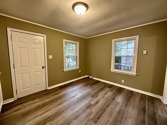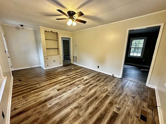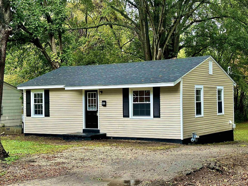 Cute 2 bedroom, 1 bath, 1-level home in Trenton. Fresh, neutral wall paint inside, updated light fixtures, and new LVP flooring throughout; no carpet. Great room with built-in bookcase, ceiling fan, and floor gas valve-ideal for installation of a ventless, freestanding gas log fireplace if so your heart desires. Updated plumbing and bath fixtures. New electrical service and Goodman HVAC system installed in 2021. New roof (2023), double -pane vinyl windows, and vinyl siding exterior. Charter Spectrum high speed internet available. Deep lot surrounded by mature trees, plenty of space for workshop/storage building.