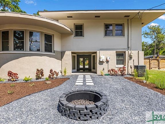 Welcome to 803 Goebel Ave, a stunning example of midcentury modern architecture meticulously updated to blend classic design with contemporary luxury. This residence is a true gem for enthusiasts of midcentury style, offering both aesthetic appeal and functional elegance. This home is like no other in Savannah! As you enter this open floor plan, you'll be greeted by rounded walls, beautifully preserved hardwood floors, and a handsome gourmet kitchen. A classic midcentury split-level plan, this home is divided into three sections. The main level bedrooms feature a convenient Jack and Jill bathroom setup, while the two upstairs bedrooms each have their private full bathroom. The downstairs studio suite was designed in 2023, adding a bonus bedroom suite with a mini kitchenette. It is an ideal space for guests, a main owner suite, or renting for additional income! Your backyard oasis with a firepit beckons you and your friends and family to relax and unwind. Solar panels installed in 2021!