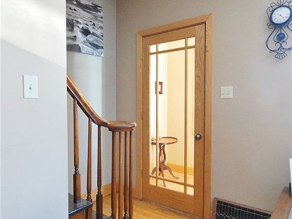 All you need in a cute package! Your next home has a separate living and dining room, large eat-in kitchen with many cabinets & counters, and laundry on the first floor, three bedrooms, full bath on the second, full, dry basement with storage cabinets, 1-car garage, and fenced back yard with a raised garden area, raspberry bushes, flower bed of established iris bulbs, patio and basketball hoop, with room to spare for play time and the clothes lines. Spacious rooms soak in the natural daylight, especially from the bay windows in the dining room and middle bedroom upstairs. Classic Old-fashioned yet fresh & open feel, with maple hardwood floors (some birdseye!), and glass french doors to the living room & laundry. The updated doors, trim, and many wood replacement windows compliment the original staircase. New roof Oct., 2016, updated kitchen, newer tub surround, and newer storm doors. Helpful neighbors, short commute to work, close to many restaurants, public beach and recreational trails. The central air conditioning will be appreciated on those hot & humid summer days. Electricity has not been extended to the garage (it previously had been an extension cord prior to this owner)