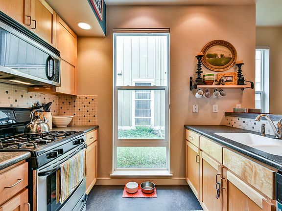Bright end-unit town house in popular Old Town North! Property features 2 bedrooms, 3 bathrooms with multiple oversized windows! Enjoy the modern loft feeling with 9' ceilings and exposed beams. Kitchen is an open concept with stainless steel appliances, concrete counters, and subway + mosiac tile! Main level features marmoleum flooring. All living area is downstairs with a half bath; bedrooms + laundry are located upstairs. The master bedroom offers direct access to the rooftop deck - over 200sqft with storage! You can also access this deck via the side of the property from the downstairs smaller patio. This property does have mature landscaping with a side yard for one small dog only - no cats, please. Open space green belt & organic community garden steps from front door! HOA includes basic cable and WiFi! Call today before this property is gone!