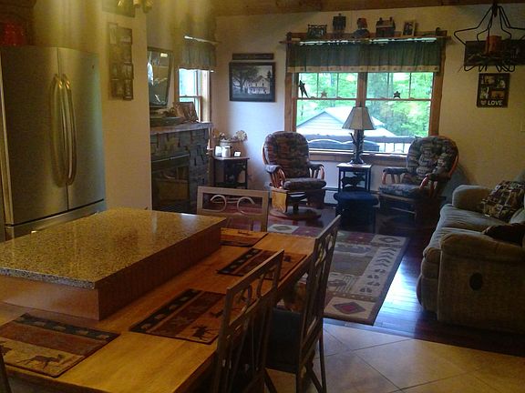 Unique log siding home in private setting with 16-22 inch wide pine ceilings. Beautiful live edge trim. Quartz kitchen countertops, Brazilian Cherry hardwood and travertine tile throughout. 28x36 detached two car garage, 16x24 workshop with three overhangs, 28x36 Pole Barn with three bays. Lots of storage.
