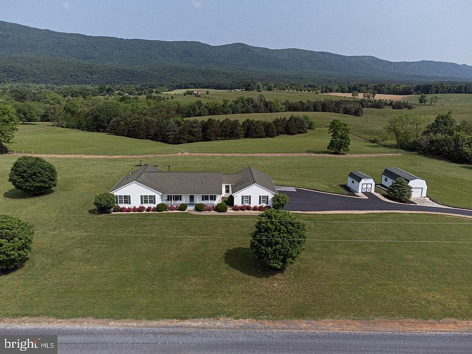 Beautiful Shenandoah Valley Home with SPECTACULAR MOUNTAIN VIEWS! This home situated on 3 lots totaling 9.6 Acres has been impeccably cared for by its owners who built it in 2006. With Views of the Massanutten Mountains and pasture land this home is located in a quiet and peaceful setting and features 2,120 sq.ft. of Living space on the Main Level with 3 spacious Bedrooms (Primary Bedroom features large walk-in closet and Primary Bath with Jetted Tub and separate Shower), 2 1/2 Baths, Large Open Living/Dining/Kitchen Great Room with fireplace, Study/Den, Laundry with Pantry exiting to wonderful porches, Decks and Patio. The Lower Level features 559 sq.ft. of finished living area with Family/Entertainment Room which also has small Kitchette, Full Bath, Bonus Room, large walk in cedar closet, Plus Workshop and huge unfinished section with plenty of storage space. Attached to the home is a 960 sq.ft. 3 Car Garage with beautiful epoxy flooring, fully insulated doors and walls, overhead heaters, 220V electric car charger, Hot and Cold Water and Floor model air compressor. There is also a fully insulated 1 car detached garage/shop with heating and cooling and a 12x20.5 storage Shed. Bring your horses and they will enjoy the fenced pasture and the wonderful 1549 sq.ft. metal roofed barn in excellent condition. The unobstructed views of the Massanutten Mountains will never be disturbed because the lower adjoining 130 acres are in Conservation easements. There have many fairly recent upgrades to the home including new propane furnace/air conditioning in 2018, new composite porch railing in 2019, new composite front porch flooring in 2022 and new Kitchen appliances in 2022.