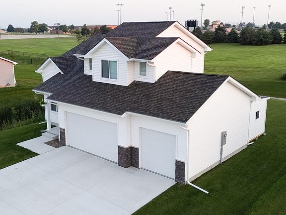 Exceptional residence packed with upgrades in Madrid, Iowa. Completed in August 2023, and spanning 1,439 square feet, this two-story home features 3 spacious bedrooms, 2.5 bathrooms, on a lot that backs to additional greenspace, making it an ideal place to call home. Open Concept: Step into an inviting open concept living space that seamlessly connects the main floor living room, dining area, kitchen, laundry room and half bath. The standard eight-foot ceilings on the mail floor were upgraded to nine feet and make a perfect complement to the vaulted living room. High-quality finishes such as quartz counter tops and luxury vinyl plank flooring top the list of features to ensure style, durability and functionality. Generous Space: With three sizeable bedrooms located on the second floor, including a primary bedroom with a full bath and spacious walk-in closet, you'll find plenty of room to relax and unwind. The additional second floor full bathroom and two additional bedrooms cater perfectly for family and guests, ensuring convenience and comfort for all. Garage and Shed Upgrades: Not only is the home loaded with upgrades, the three-stall garage is as well. The insulated garage doors were upgraded to eight feet in height and four feet of depth was added to the third stall to ensure parking opportunities for tall trucks or large SUVs. Additional garage upgrades include nine-foot insulated walls, a 220v electrical outlet, thermostat wiring and a gas line ready to accommodate a heat source of your choice. These upgrades provide extensive space for vehicles, storage, or even a workshop area. Behind the garage you will find a newly constructed 10'x12' shed for even more storage opportunities. Community & Location: Nestled in the welcoming community of Madrid, you'll enjoy a perfect balance of small-town charm and convenience to the amenities of larger cities. With close proximity to the Des Moines River, Big Creek State Park, Swede Point Park, the High Trestle Bike Trail and easy access to hundreds of acres of public land, multiple outdoor recreational opportunities are only minutes away. Don't miss out on this extraordinary opportunity to own a better than new home packed with upgrades.
