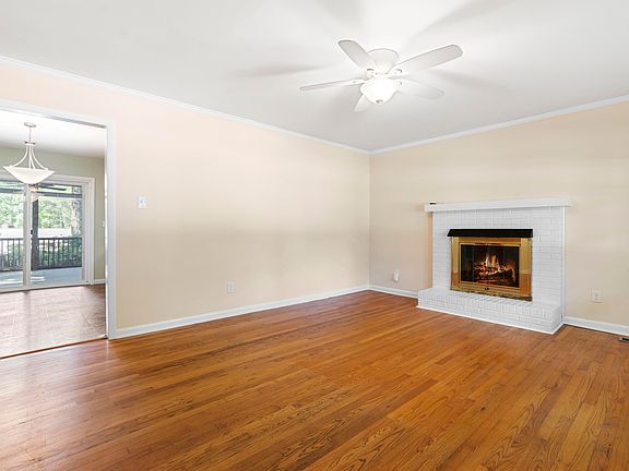 Close to downtown Cary without the downtown price! If you want one-level living less than 1 mile to all that downtown Cary offers, this is the perfect home. This ranch with 3 bedrooms and 2 full baths has a brand new roof (2024), fresh interior paint, lush landscaping, large flat lot and a carport with additional parking pad. Relax or entertain in the spacious screened porch and deck overlooking the manicured backyard.   The living area features hardwood floors, crown molding and a cozy fireplace. The kitchen has updated cabinets, quartz counters and the refrigerator conveys. A sealed crawl space, fiber cement siding, and updated hall bath make this home move-in ready. With no HOA, this won't last long.